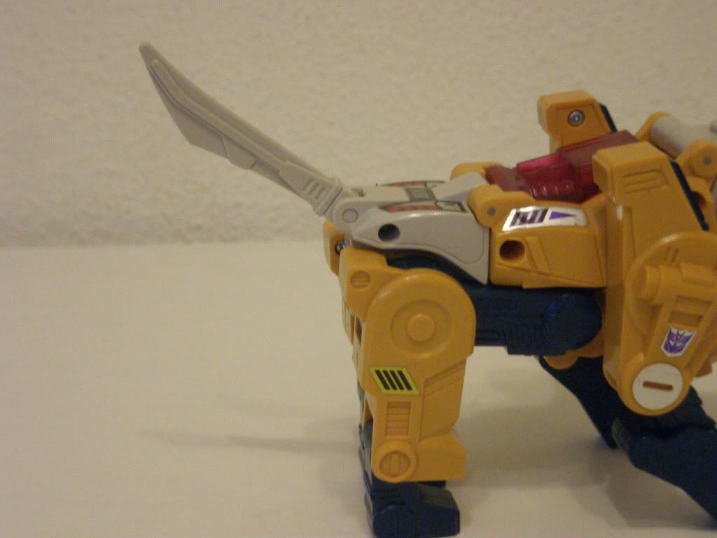 Las alas estaban montadas al reves... se supone que son hacia atras y no hacia delante. asi queda mejor, pero es que sino no se pueden plegar para el modo robot y el modo gorila. Ni os imaginais el acojone para quitarlas y no romperlas... Otro dia os pongo una foto con las alas a su manera. Este es un detalle de Spasma, que coo podreis ver, de los detalles que tiene por detras compensan la falta de pintura en el frontal: