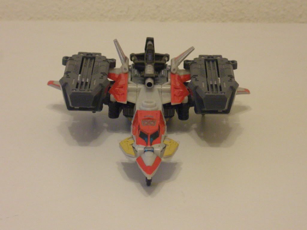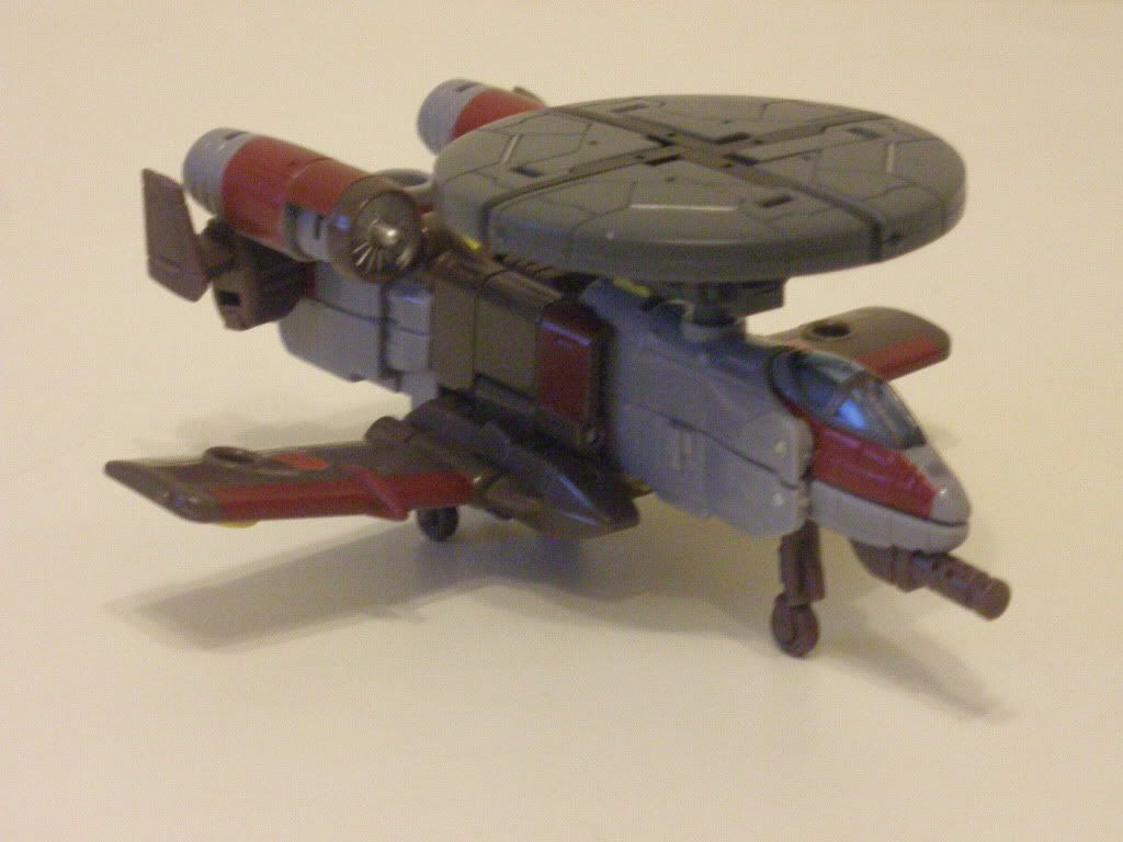 Increible tambien esta transformacion. Y como buen triplechanger, su tercer modo alterno, una nave espacial. Como se me ha olvidado hacerle fotos y ahora no dispongo de tiempo, os pongo una de la persona que me lo vendio en ebay: