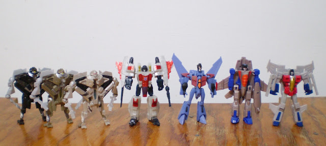 Sutasukurimu Alternator / Binaltech | #181• Yo llegué a ver imagenes de Starscream con la cara sin pintar... en fin, comentar que el trabajo de pintura es bastante decente, le da una mejor presencia al modo robot. Y según sí se pueden hacer los Coneheads y quedarían bastantes decentes pero sólo Thrust tendría las alas de modo correcto. Y perdón, pero yo preferiero este al repaint de Cybetron Spoiler: |
